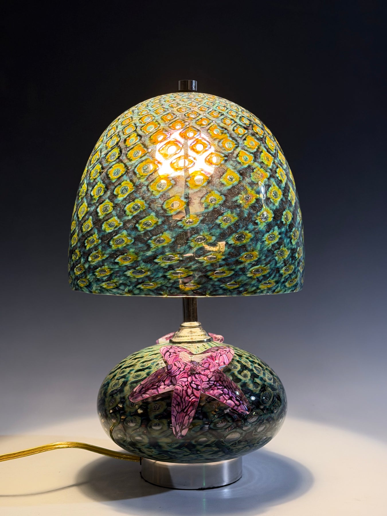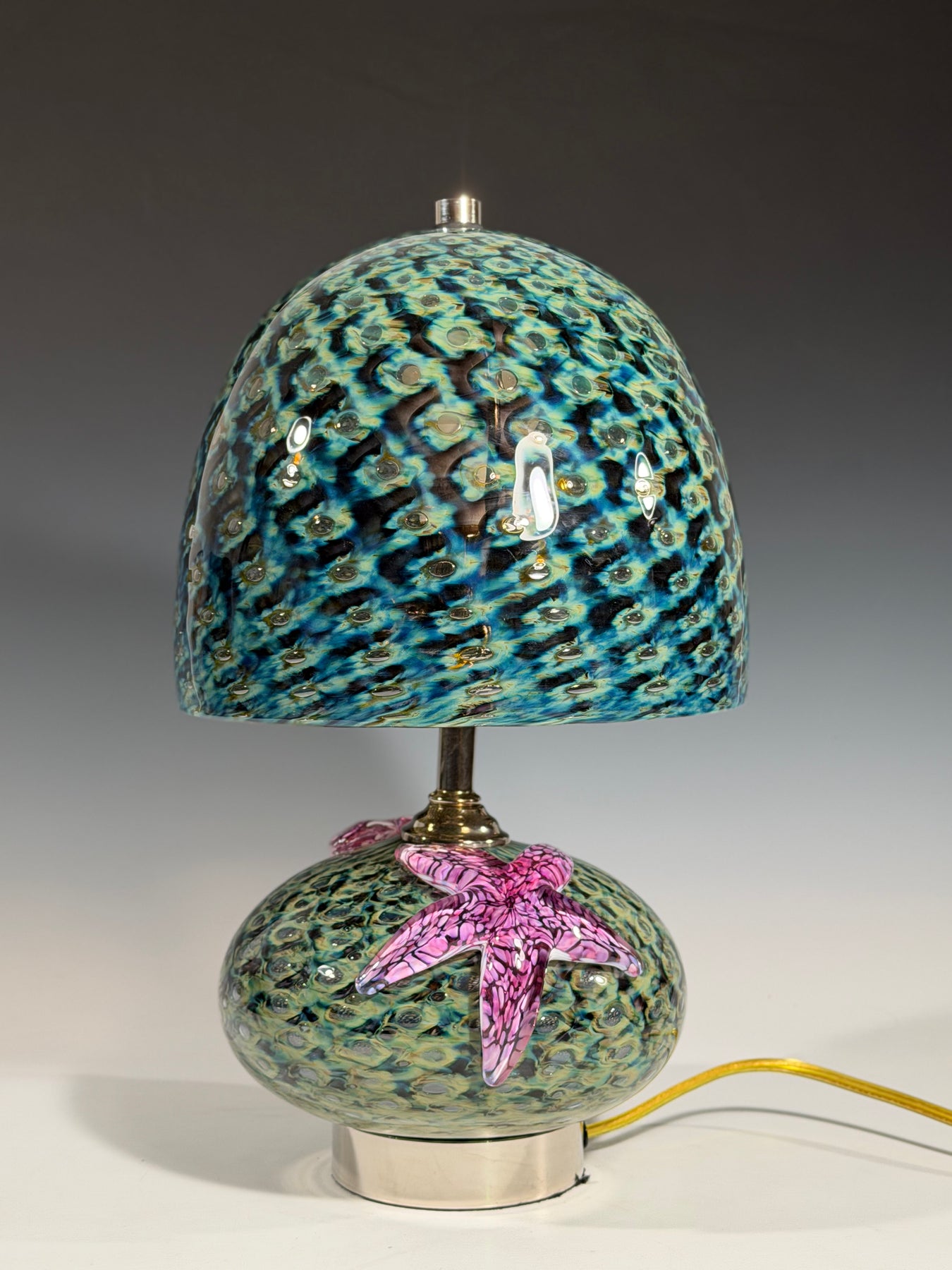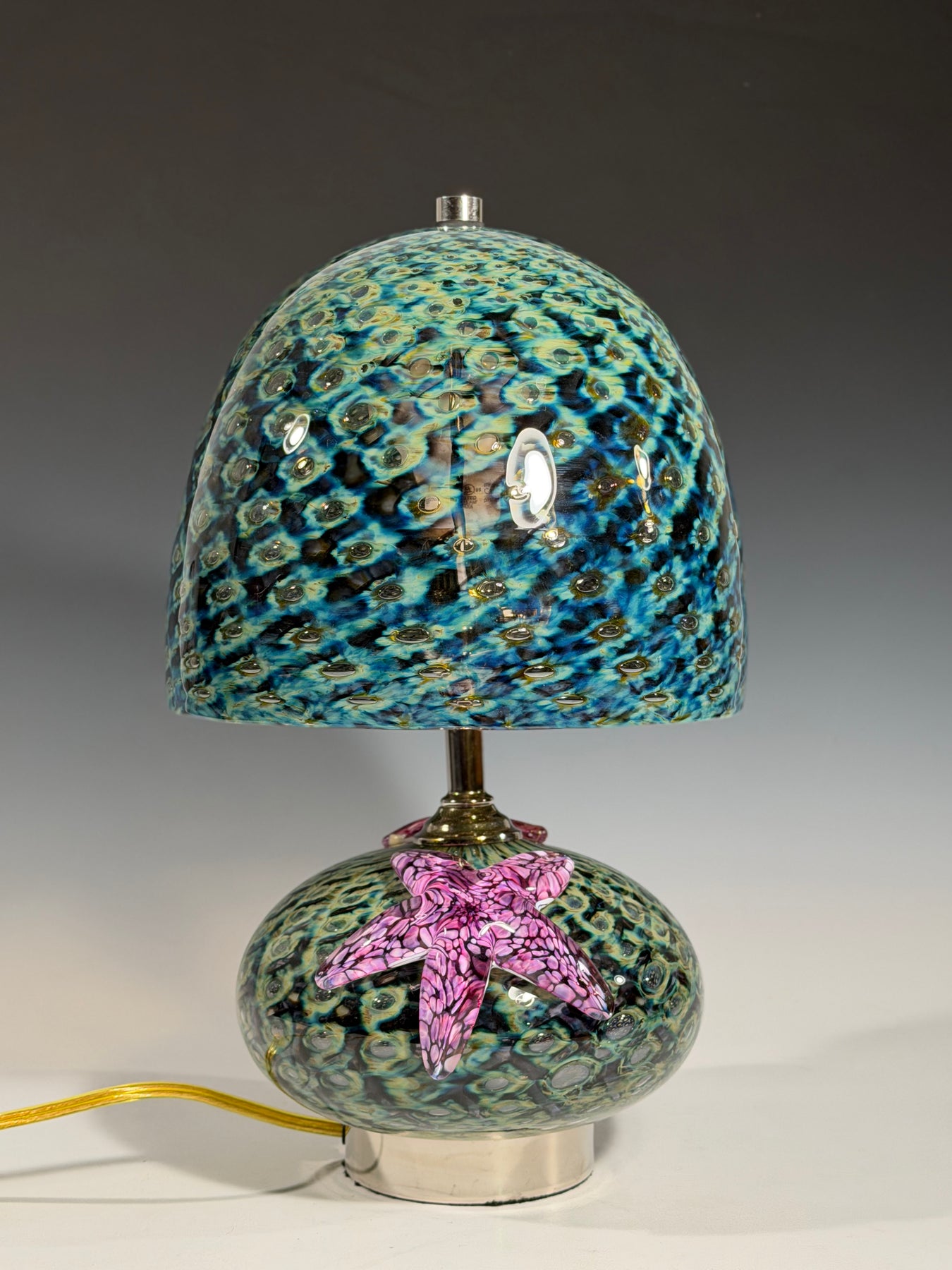 A wonderful addition to any home. A unique way to light up a room, with starfish giving a finishing touch. Standing about 15.25 inches high and 8.75 inches wide.